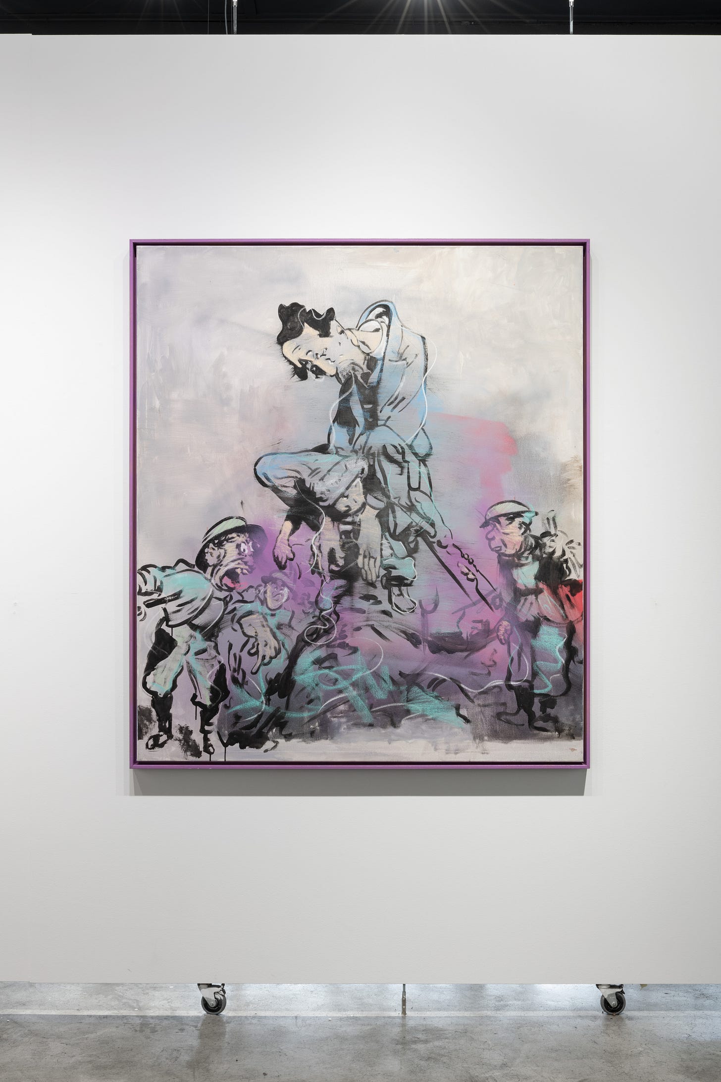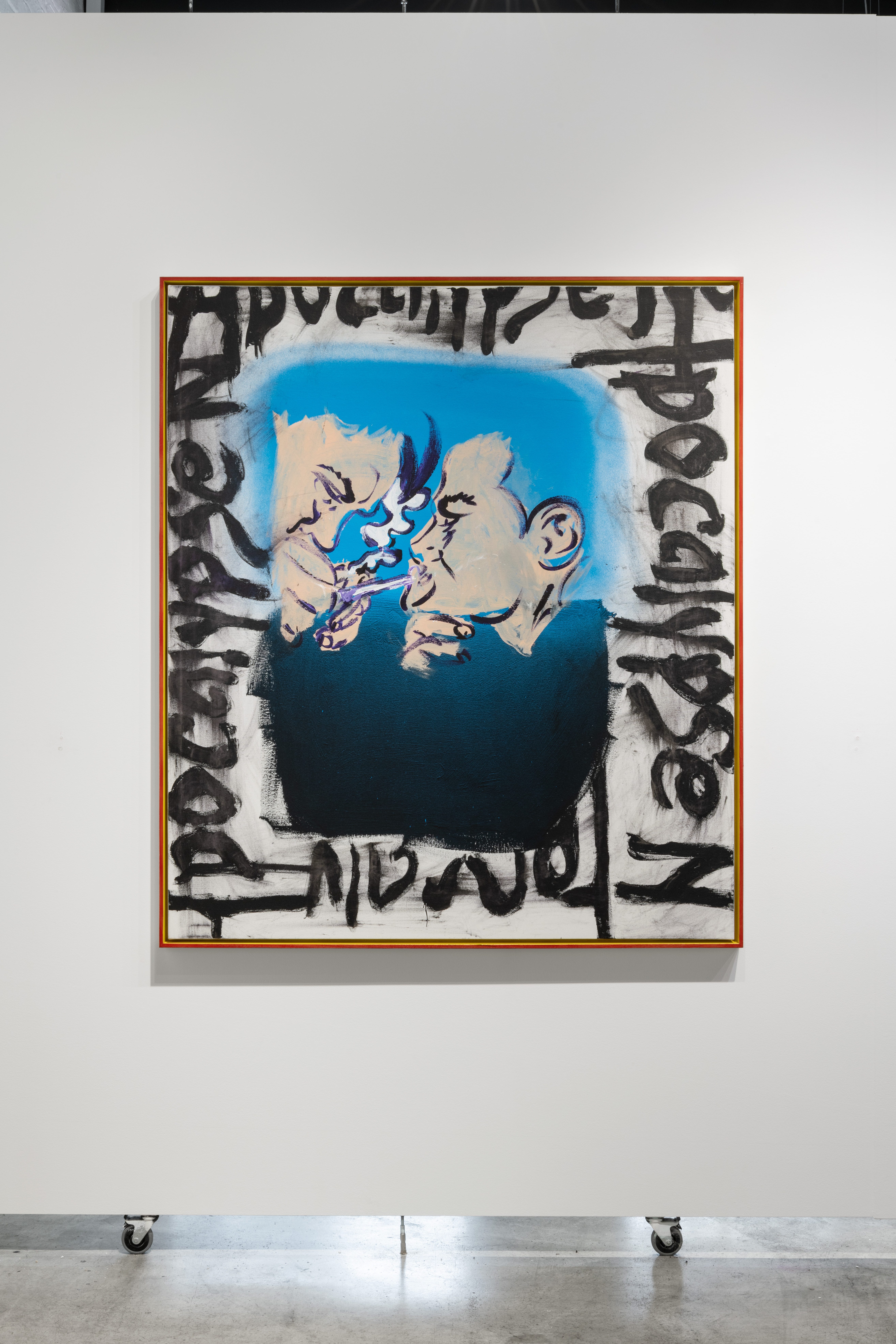 Here Aitken has appropriated, reworked and recontextualised cartoons and caricatures from the Vietnam conflict to chilling effect – not avoiding the racial visual slurs toward figures ranging from Ho Chi Minh to Henry Kissinger. This is a body of work that embraces its own catharsis in vibrant colours and gestural mayhem – the narrative of Aitken’s upbringing in a military family, boxing, substance abuse and discipline which has formed his work ethic within the art world.