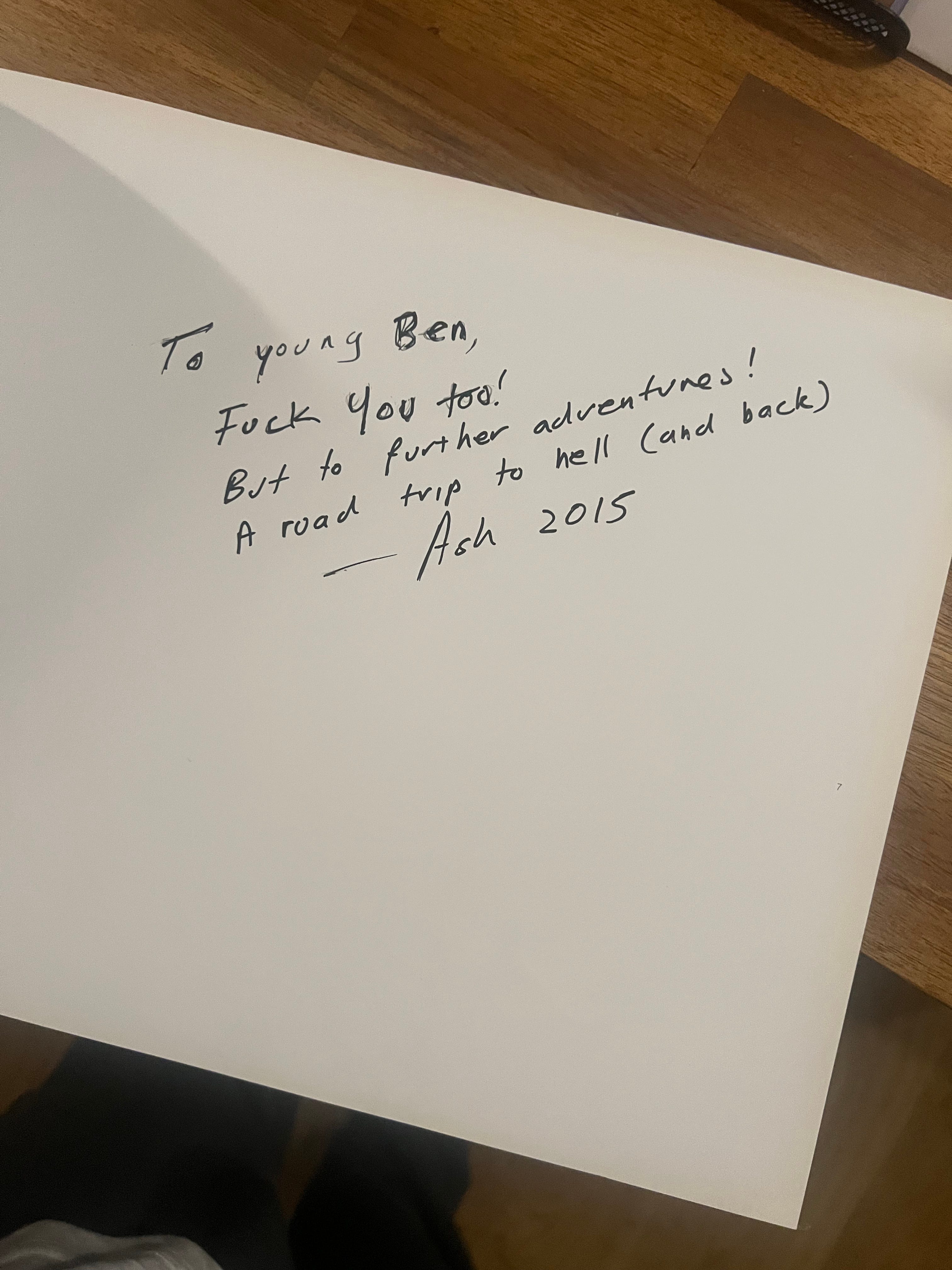 Early in my career, Ashley was very important to me, and one of the first to unconditionally support my art. He did this for others too, fostering careers in so many names we know and love today. I don’t post eulogies often but he demands a public acknowledgment. Ash wrote countless essays on my work, helping me understand myself. I had the honour of him opening my first ever exhibition. A man who was nothing but critical, and myself, accompanied by a sardonic attitude, tested each other at times. We always made up, but this time it was left too long. So tonight I’ll have an Asahi with SWANS on loud and think about the great times while wasting none on regret. Ash told me once that the liver is evil, and it must be punished. We dished out some heavy discipline, yet I started to believe he might actually outlive us all. He lived a full life, multiple in fact. A brilliant mind, the most intelligent man I’ve met; I have never had more BBQs with anyone as I have with Ash. Friends you brought into my life, Sam, Jon, Simon etc, are another reminder of your belief in me. Gareth Sansom’s work that you gifted me hangs high reminding me further of your generosity. I could go on, but my words will never emulate the weight that yours effortlessly had. And so, with that said and done; I will see ya later mate, rest in peace.